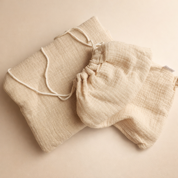 De zachte kleuren beige en oudroze geven deze set een tijdloze, lieve uitstraling. Perfect als kraamcadeau of om je kleintje te verwennen.