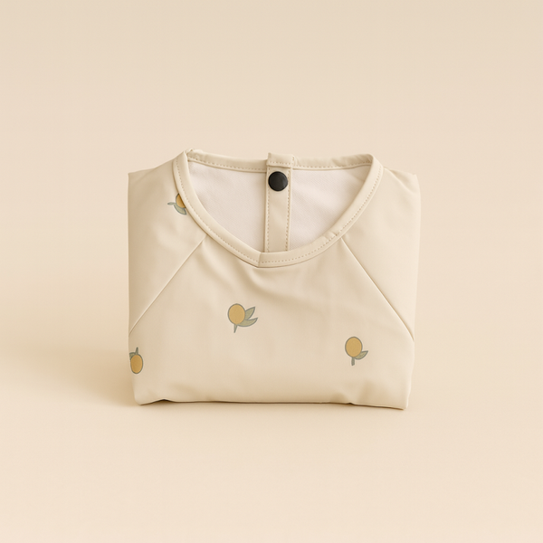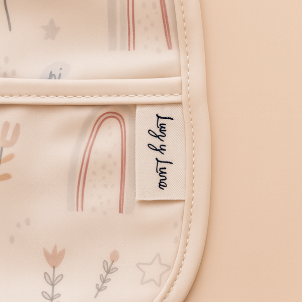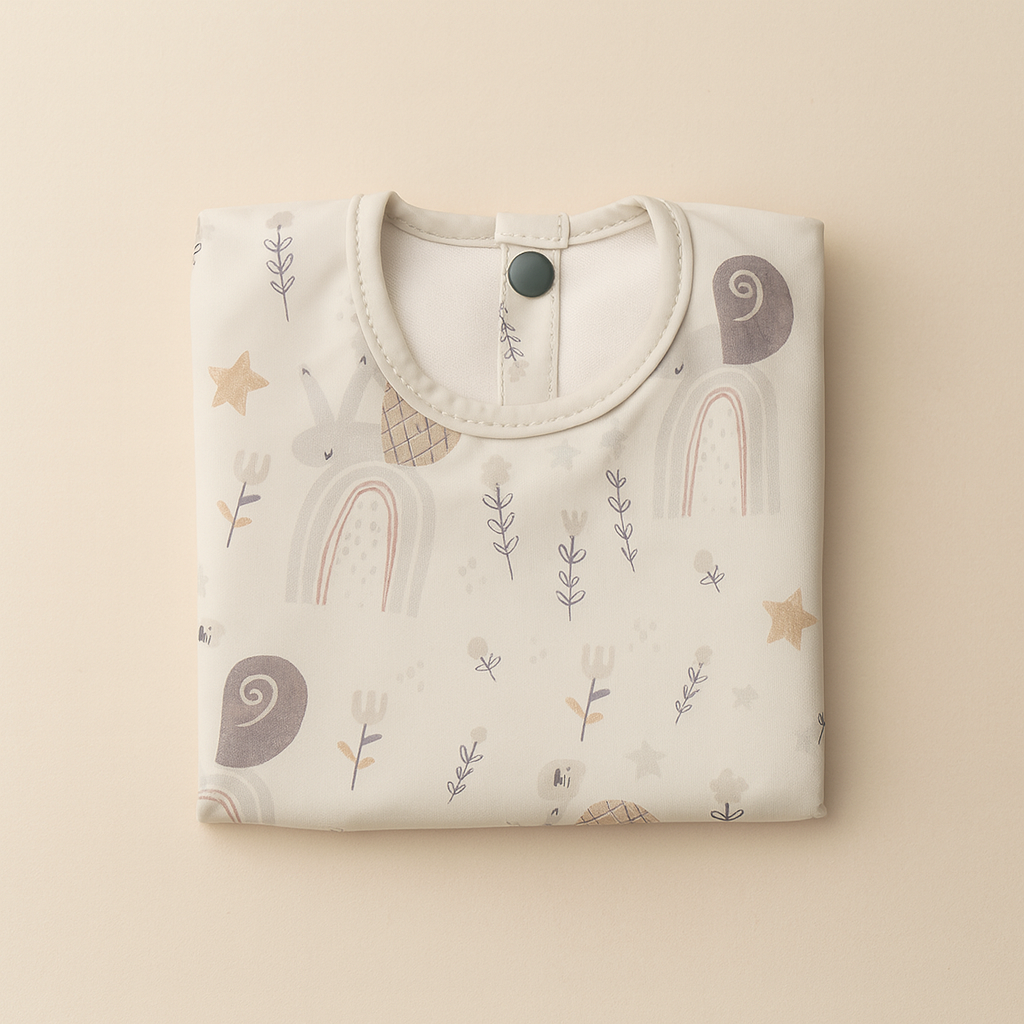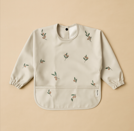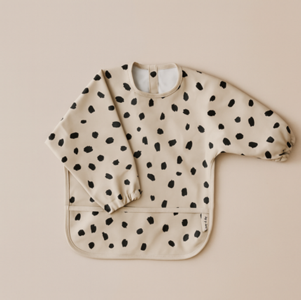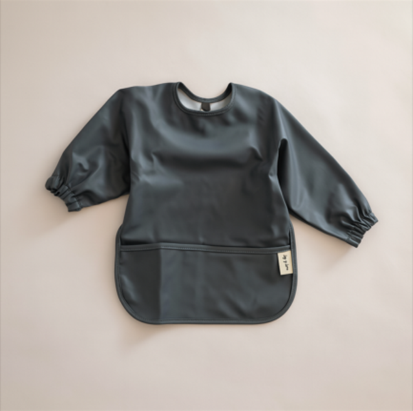 Gemaakt van 100% polyester, waardoor het licht, soepel én makkelijk schoon te maken is. Dankzij de lange mouwen en handige opvangzak onderaan blijven kleertjes schoon of er nu gesmuld, geknoeid of geknutseld wordt.